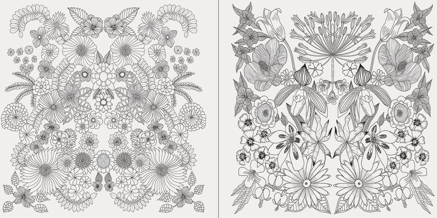 少しサイケデリックで個性的な"ぬりえ"です。優しいカラーも素敵ですが大胆な色も映える野の花の絵柄が特徴的です。アート過ぎる"ぬりえ"です。